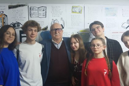 Преподаватель Роман Леонидович Шкловский научил школьников работать с телесуфлером, разрешил поснимать настоящей камерой и приоткрыл секреты студийного освещения. В радиостудии экскурсию продолжила Марина Игоревна Цуканова. Здесь речь пошла об особенностях звучащей речи и о том, как пульт и микрофоны важны для радиожурналиста.